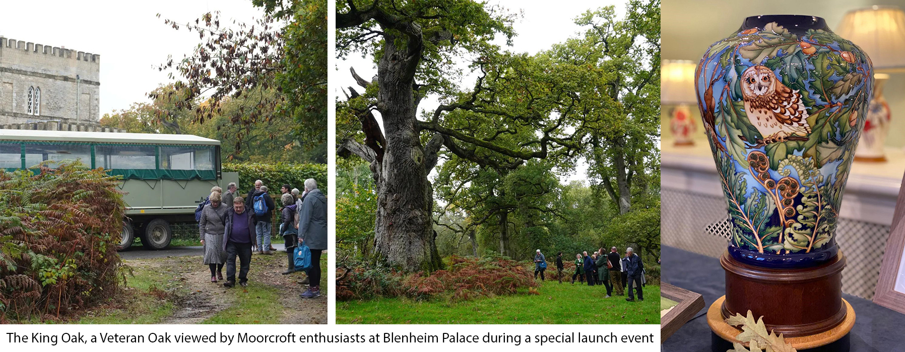 Moorcroft were delighted to have been granted permission to launch this new collection at Blenheim Palace in Oxfordshire – an Estate which is home to more than 866 veteran oaks in an area known as High Park. Standing proud in the Applied Arts, The Majesty of Trees holds a Queen of Moorcroft design, an artistic vision of the Estate’s ‘Queen Oak’ – a monarchical tree with more of more than a 1046-year reign.