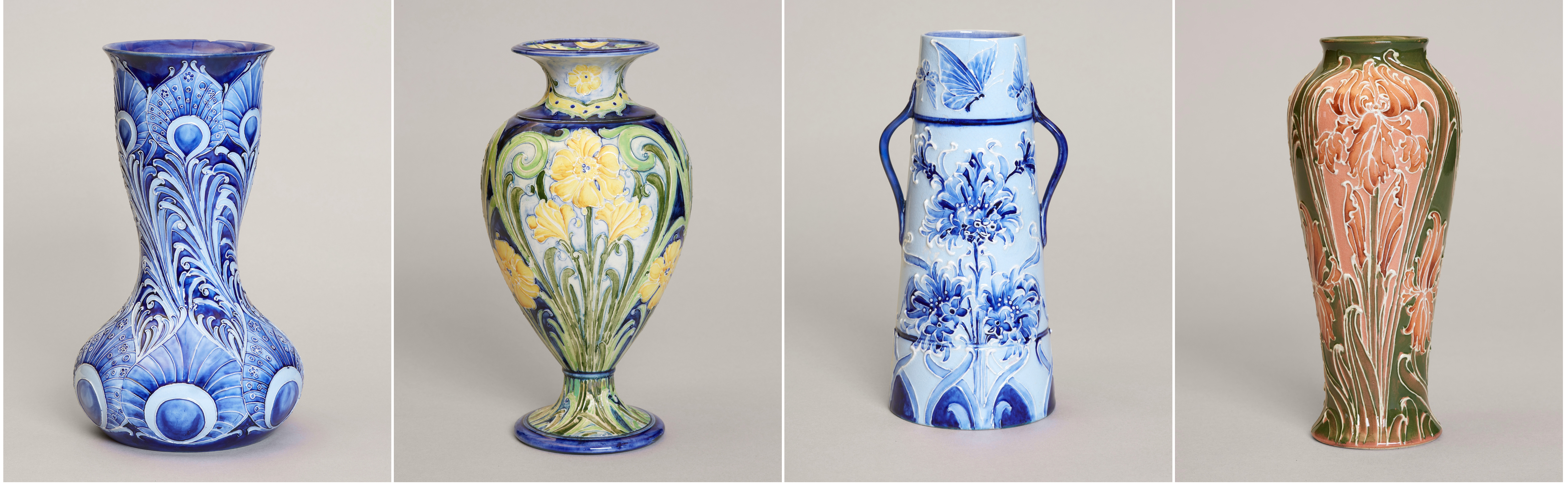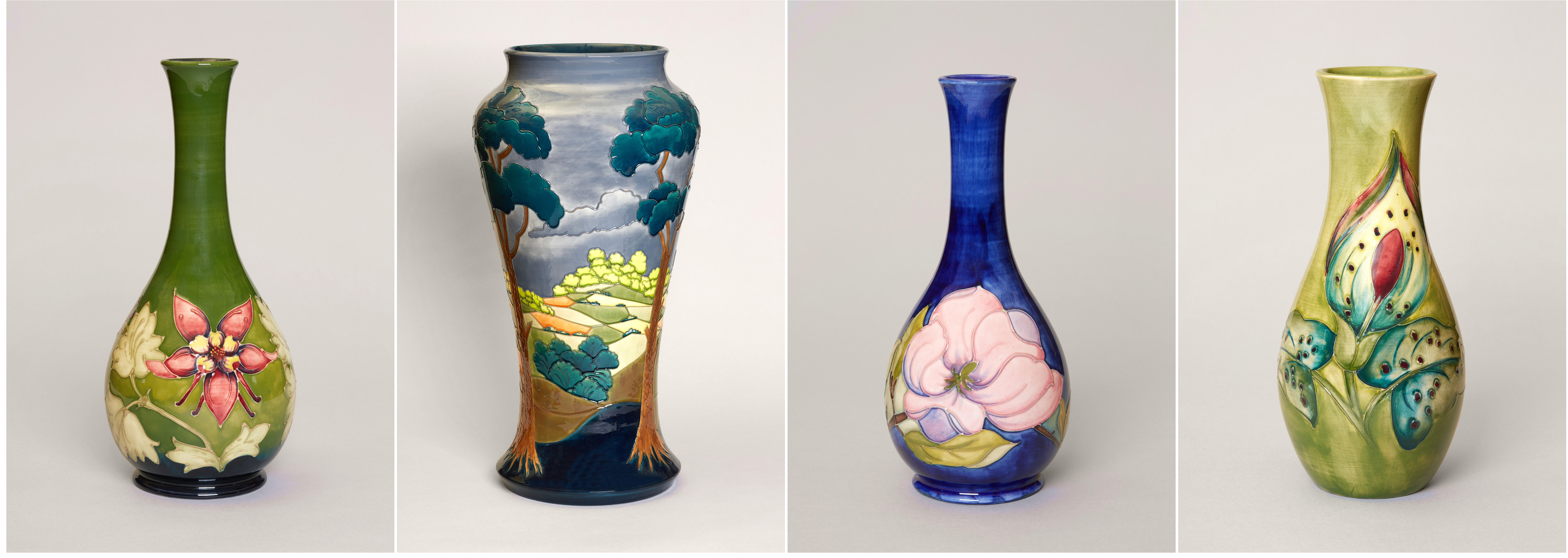 William’s first pieces of fine art pottery were introduced to the world during his time at James Macintyre & Co. His pottery gained immediate recognition, being purchased by prestigious retailers such as Liberty of London, Harrods, and Tiffany & Co. in New York. His breakthrough came with Florian Ware — richly coloured, hand-decorated art pottery influenced by Art Nouveau — which won a gold medal at the 1904 St. Louis International Exhibition. His practice of signing pieces was unconventional for the time, raising both his profile and the value of his work. Early Moorcroft is still prized by the most renowned auction houses across the world and regularly fetches high prices.