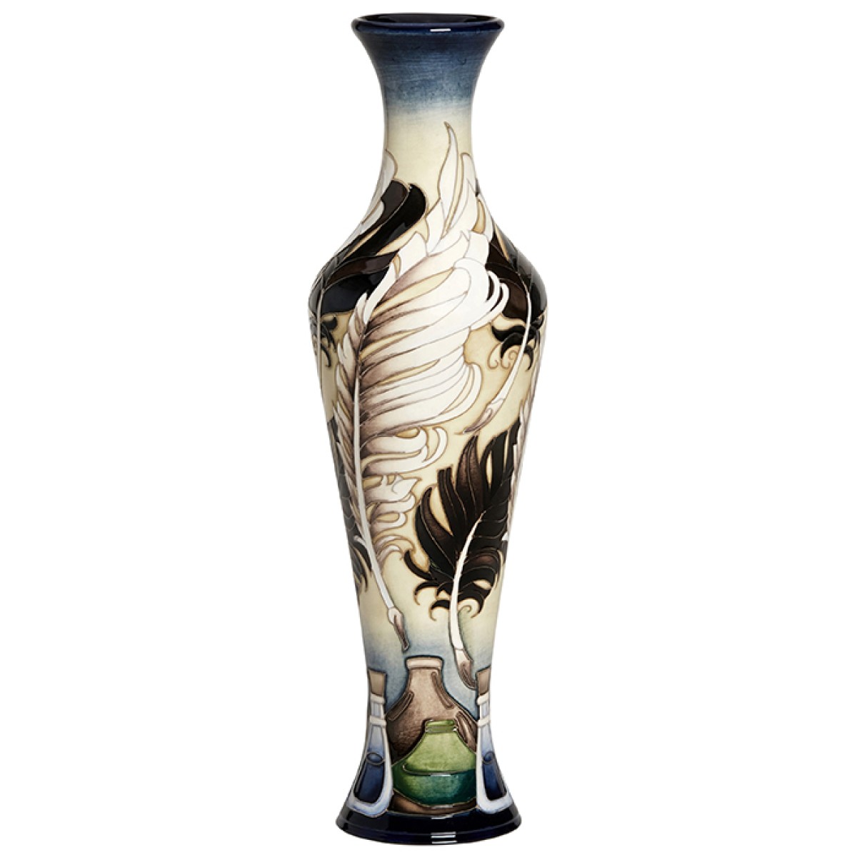 Jane Austen’s surviving manuscripts were written in a variety of this home-made iron gall ink with a goose-quill pen. Jane wrote at a very small table in her dining room in Chawton and Emma pays homage to the writer with black and white quill feathers, floating above myriad inkwells in shades of dark blue, bottle green and brown.