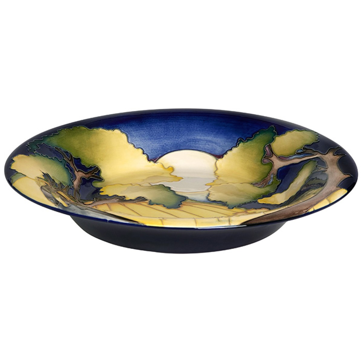 This year, the watchers among us would have noticed that the Harvest Moon seemed closer to the earth than usual with an atmospheric golden glow. Captured by Kerry in Harvest Moon the moon, whose light has traditionally allowed farmers to work into the night and bring in crops from the field, comes glowing, bigger and brighter, over a field of harvested corn, as if it had come to rest on the rolling hillside. Much like Van Gogh’s La Moisson, Kerry wanted to capture the nostalgia of farm life and work on the land. The wheat field is stripped down to vivid yellow stalks, the corn bundles neatly tied and the reapers tools are laid to rest as the Harvest supper commences. This is a design so apt for a new pasta bowl shape, with boughs of clouded trees curving over the harvest as if nature itself wanted to bend with the harvesters at work.