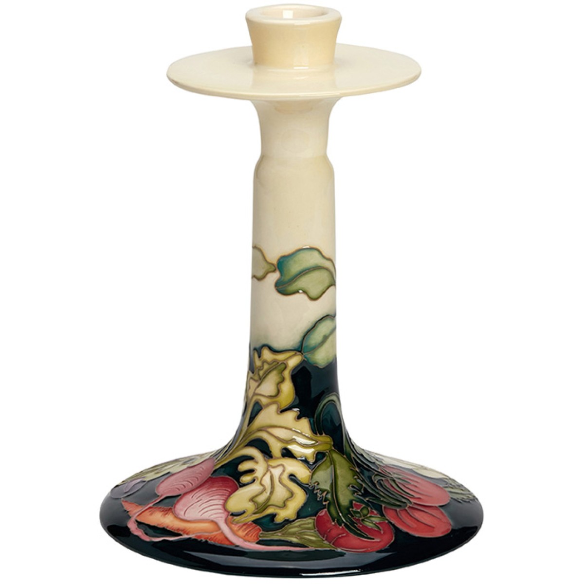 Keen gardeners will tell of the sheer joy of lifting up giant marrow, tomato or cucumber leaves and seeing plump, ripe fruit hiding underneath. It is better still when a farmer who grows a field full of carrots or other root vegetables hidden under earth, whose livelihood depends on a good crop, digs his spade into the ground to find a good harvest. Discovery uses the elongated candlestick stem to weave carrot leaves up to the burning wick. Around the base, displayed like Harvest offerings on an altar, ripe, plump, fiery-red tomatoes; amber-flamed carrots; vibrant-green broccoli stems; rich reddish-purple aubergines and beetroot, hold a feast of colour for Discovery.