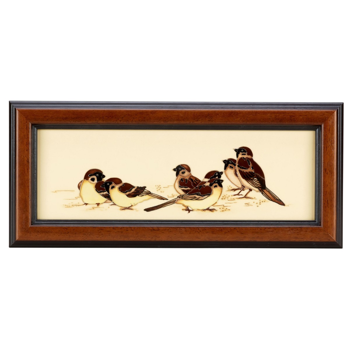 Every now and again, a great design will emerge from Moorcroft – one which, by its very nature, will cause heads to turn and collectors to open their doors and bring it into their homes. These designs do not have to cost a fortune to be wrapped in that prized cloak of greatness. Indeed, their simplicity can bring them from nowhere to play with our emotions and remain with us for ever thereafter. There can hardly be a less likely subject for greatness than a group of seven tree sparrows, their plain brown and grey-fawn plumage with tell-tale black cheek spots, can hardly be said to come from the regal world of peacocks, yet here they are, posturing happily on the simplest of Moorcroft plaques. These seven sparrows is a design lining itself up to become a great piece of Moorcroft.