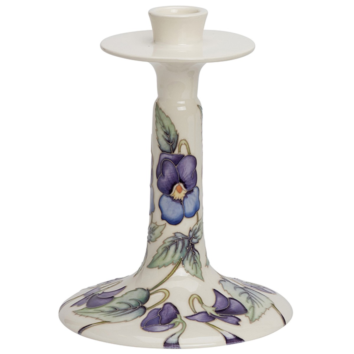 Candlemas Day is an ancient festival that marks the midpoint of winter, halfway between the shortest day and the spring equinox. In February, the nights are still long and dark and so warming candlelight is still very much welcome in our homes. This year, designer Nicola Slaney brings forth Feverell, with winter pansies in shades of purple and blue flowering against pale white clay. The centre of the pansies are a soft yellow with a fiery orange centre, a subtle nod to the candlelight that brings cheer to us all.