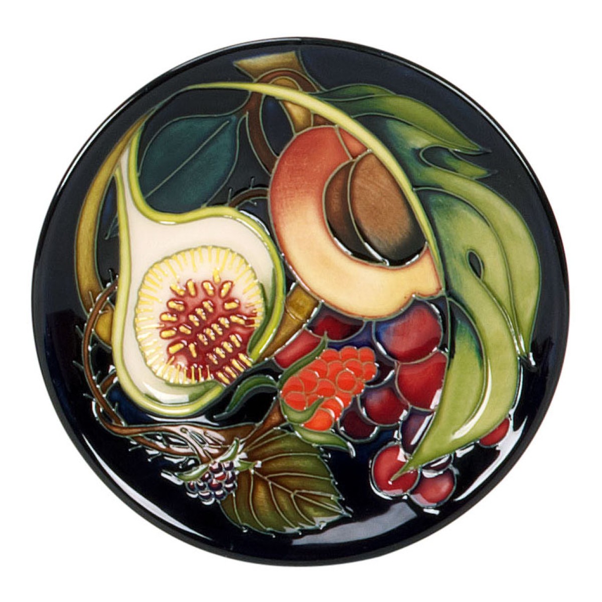 Queens Choice with its succulent grapes, ripe figs and peaches was inspired by Titania’s words in ‘A Midsummer Night’s Dream’. Queens Choice has arguably become one of the most admired Moorcroft designs of all time.